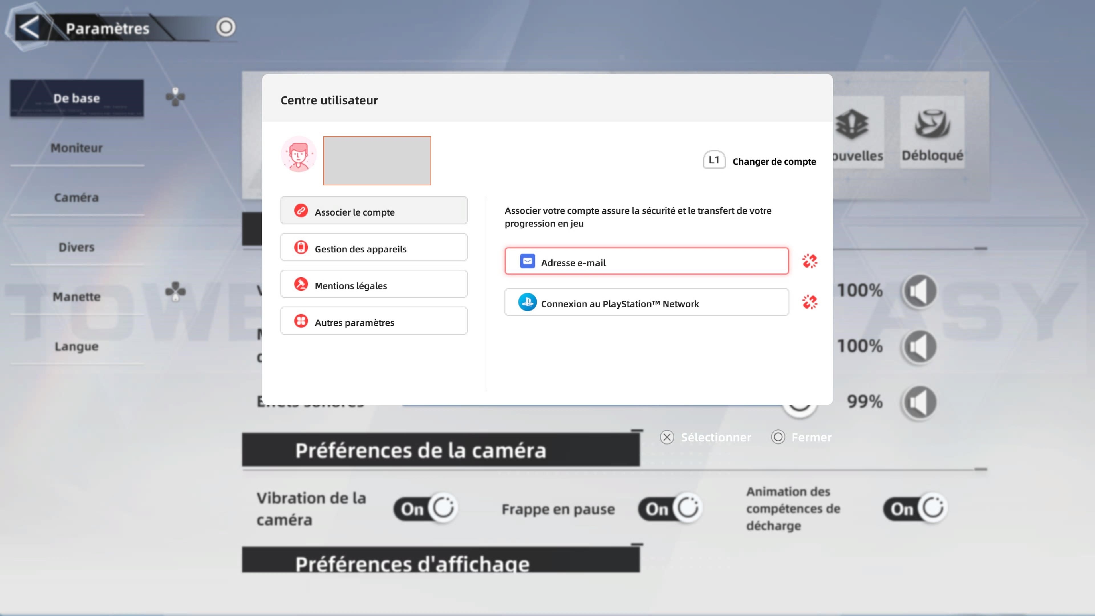 Vous pouvez associer votre compte de jeu à d'autres comptes en allant dans Paramètres - Base - Centre utilisateur depuis la version PlayStation 4 ou PlayStation 5.