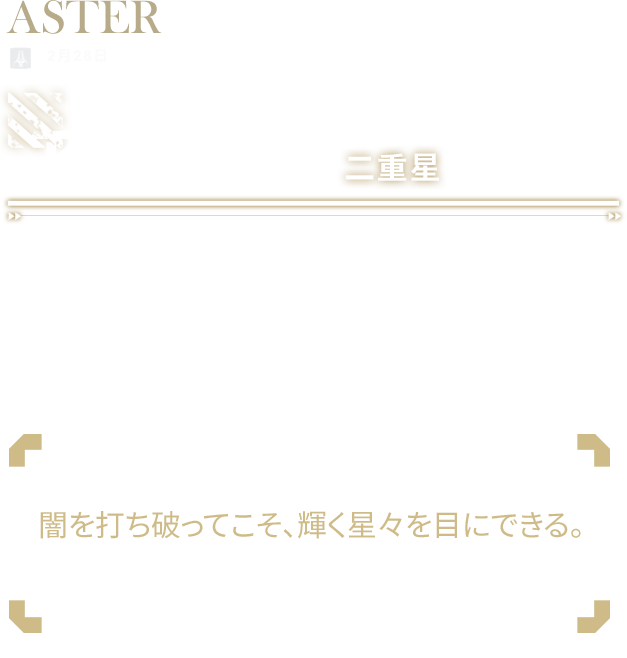 名家出身の貴公子。普段は謙虚で春風のように穏やか。そんな物静かな彼だが、過去にはハガードのオフィサーに直訴してマーク小隊を率いる重責を担い、謎の残るヴェラで孤軍奮闘したこともある。さらにアブサントの痕跡を追ってインニスの要地に乗り込むなど、温和で礼儀正しい見た目からは程遠い活躍を見せる。