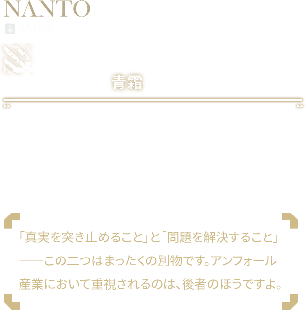 前地域チーフオフィサー・晴信の一人娘。その意思を受け継ぐ後継者として育てられた。正式に就任はしていないが、次期チーフオフィサーに推す声は多い。