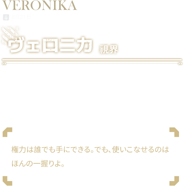 「ヴェロニカ将軍こそが、私たちを光の新時代へ導く方だ」――ドリーム艦隊の隊員たちはそう語る。彼女は誠実だ。いかなる部下に対しても私情で判断を歪めず、成果のみで賞罰を下す。