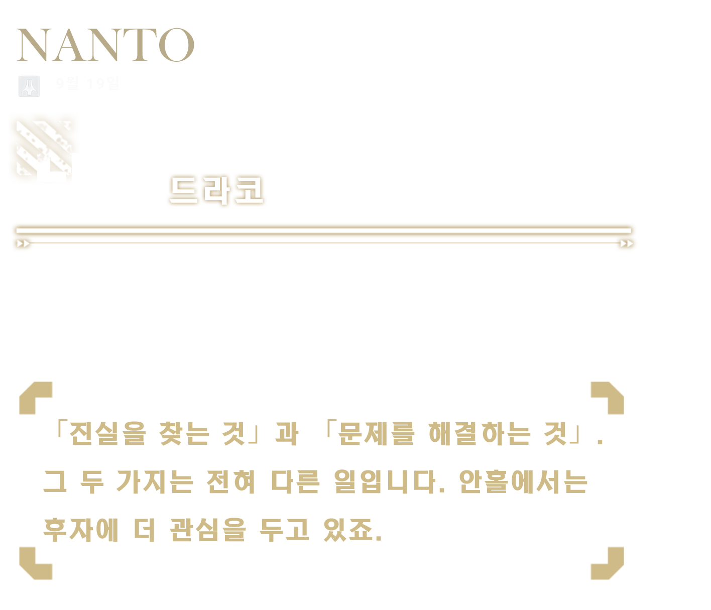 킬로의 중심지로, 최초의 킬로 방주 우주 정거장을 개조하여 만들어졌습니다. 현재는 킬로의 종합 행정 중심지이자 경제 및 연구센터로, 호프 함대 본부와 안홀 그룹 본부도 모두 이곳에 자리 잡고 있습니다.