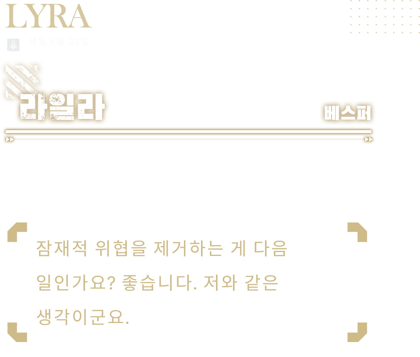 A mysterious woman who wields a flute to control the dead. Cold and ruthless, she wouldn't think twice about sacrificing everyone, including herself, if it meant achieving her goals. Gifted with an uncanny intuition, she can peer into one's deepest thoughts and is attuned to even the slightest changes in her surroundings. This sharp awareness ensures she's never outnumbered, and she leaves little to no trace of her actions.