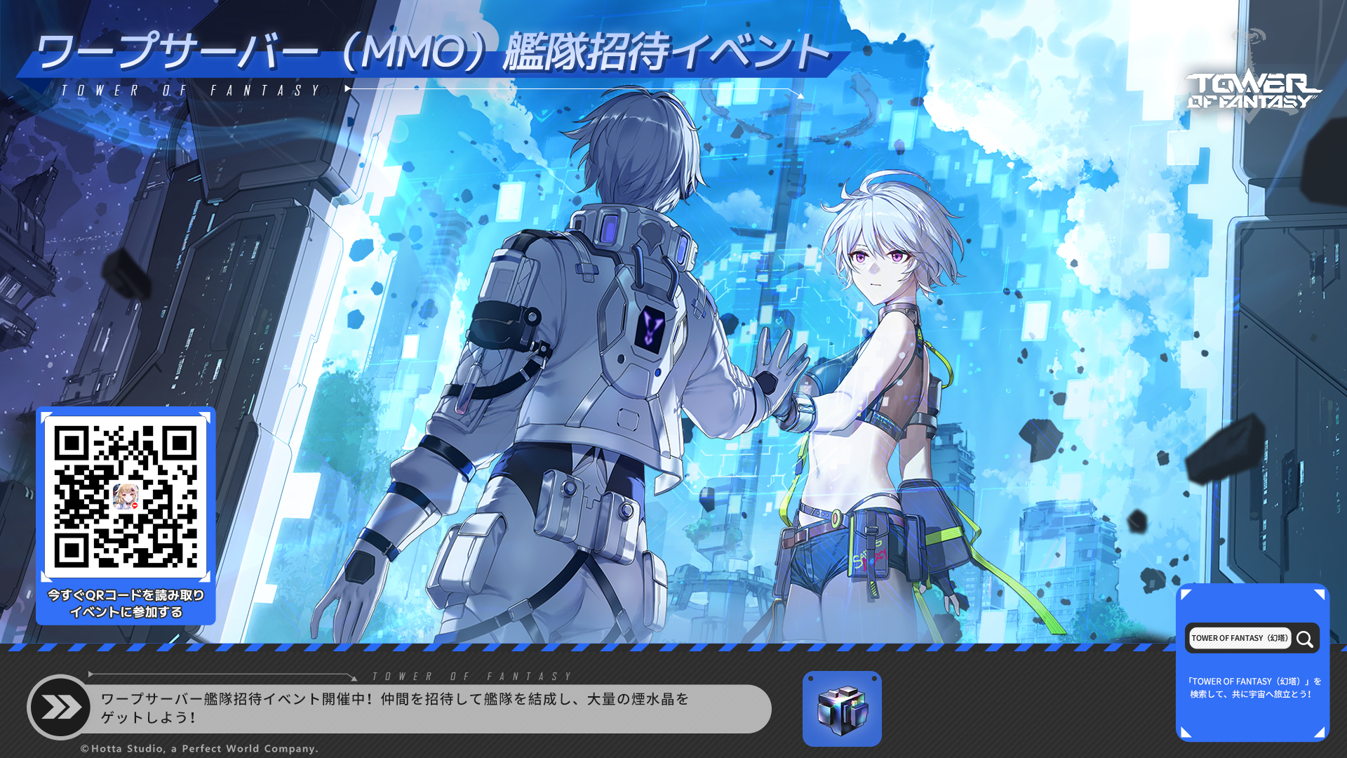 2、イベント期間中、キャラクターレベル6以上のワープサーバー(MMO)プレイヤーは、特設Webページから専用の招待コードを取得可能。招待を受けたプレイヤーがイベントページで招待者のキャラクターを紐付けると、艦隊参加が完了となります。艦隊内で招待者と参加者が目標を達成すると、双方に報酬が配布されます。